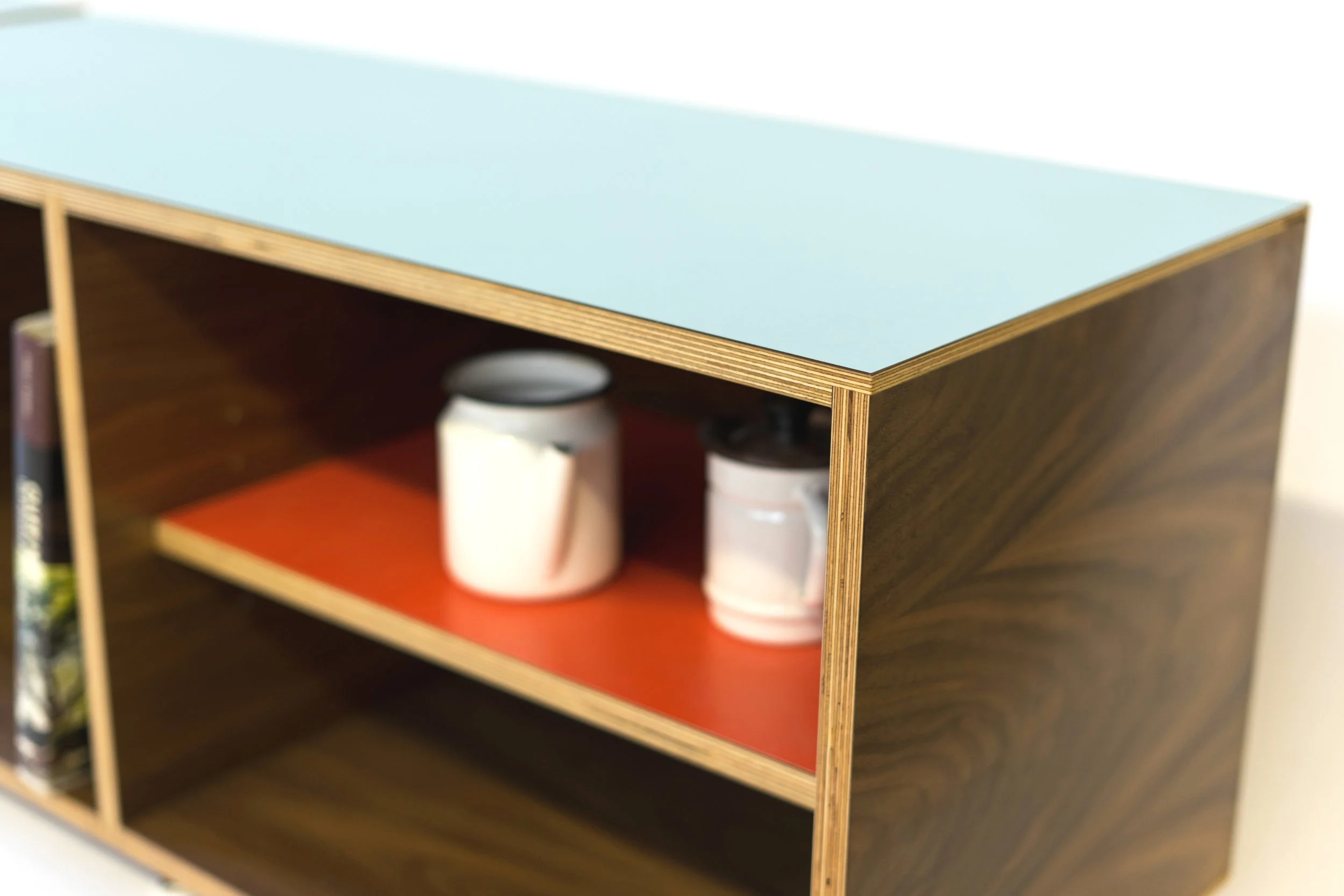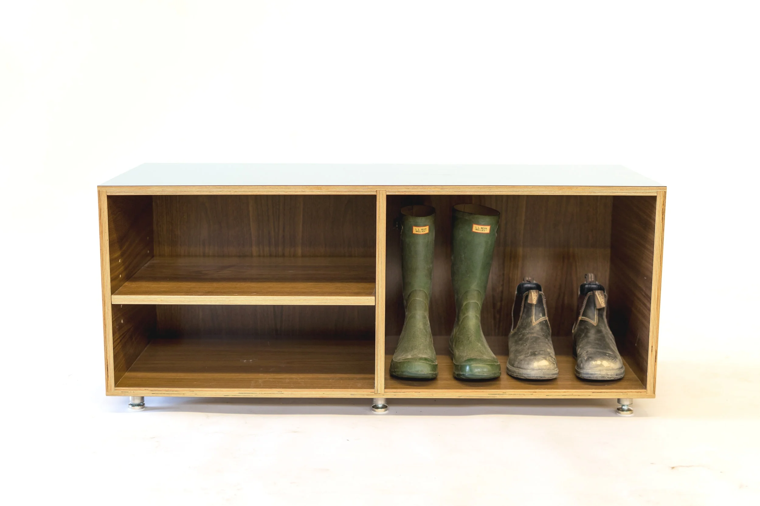 A meeting of early morning space adjoined by entry way hygge to create the perfect surface to gather and create over a steaming cup of tea. Made with reclaimed plywood from Kerf Design.